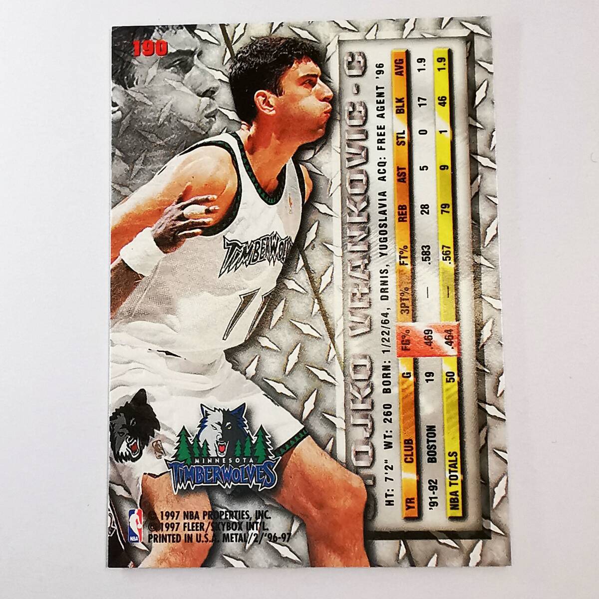★96-97 Fleer Metal #190 Stojko Vrankovic Basketball card バスケットボールカード ストイコ・ヴランコビッチ■NBA