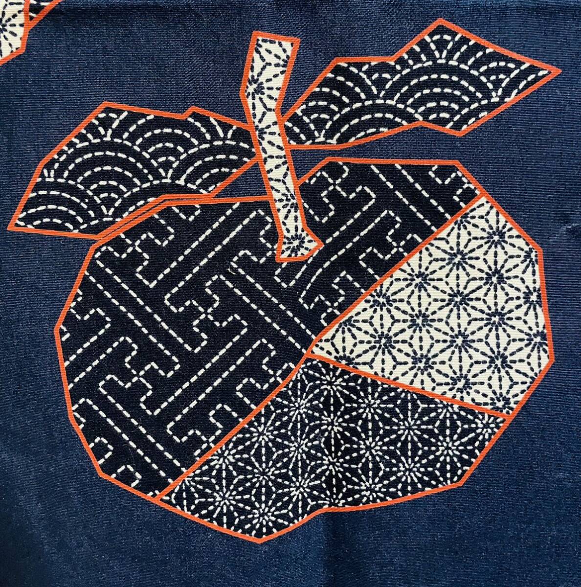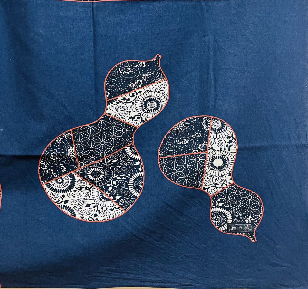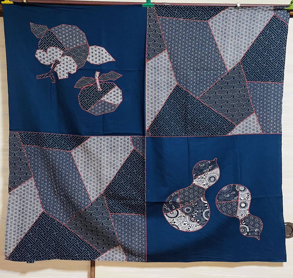 布玄・綿100% 柿、瓢箪、刺子模様風呂敷 122cmx109cmになります。長年自宅保管していたので少し汚れや擦り傷などあります。御理解いただける方よろしくお願いします。