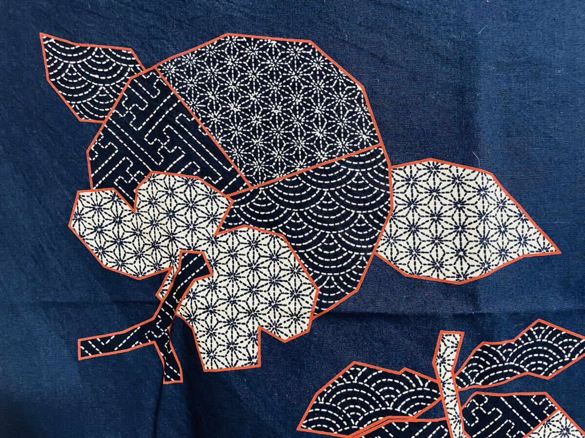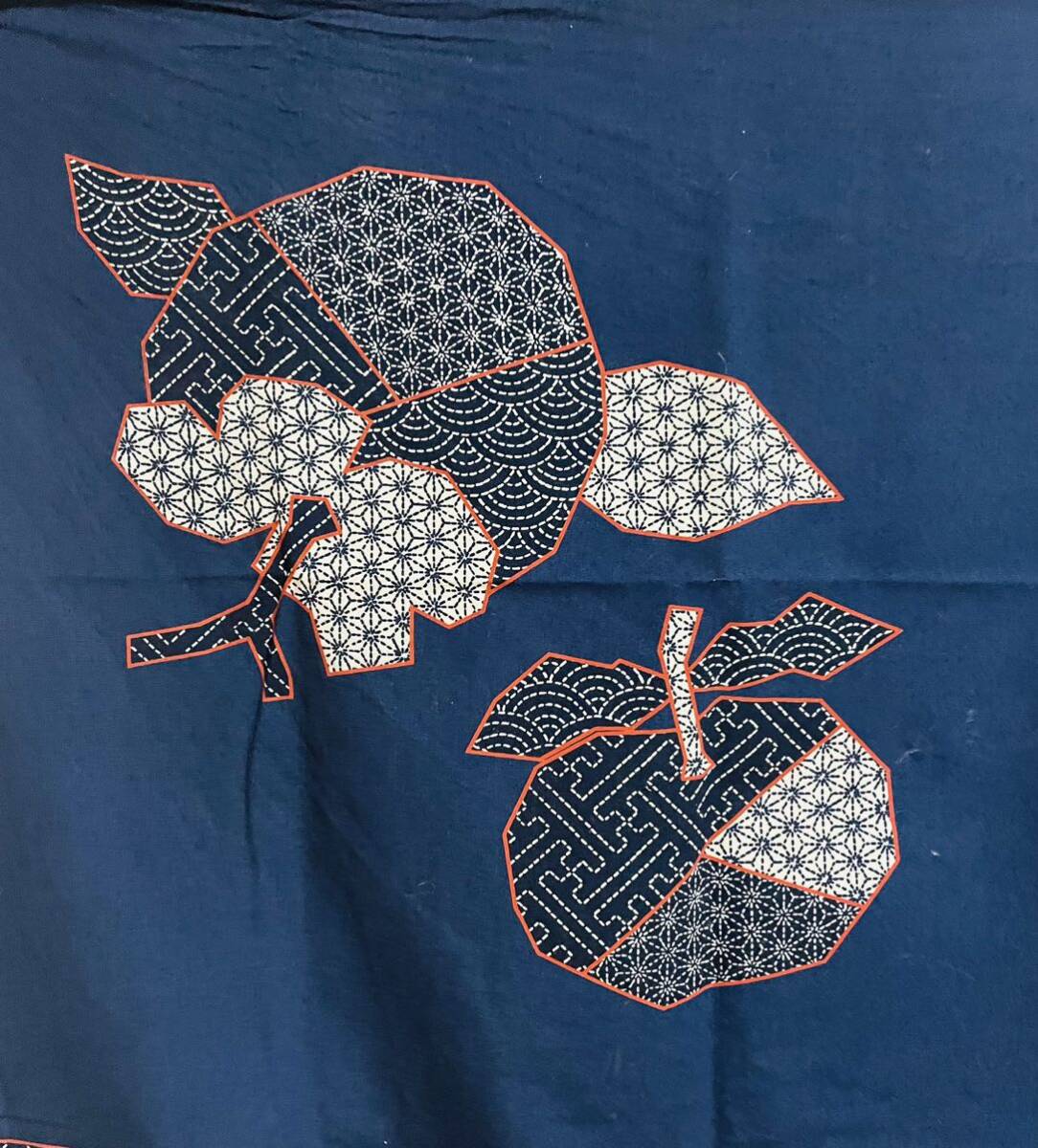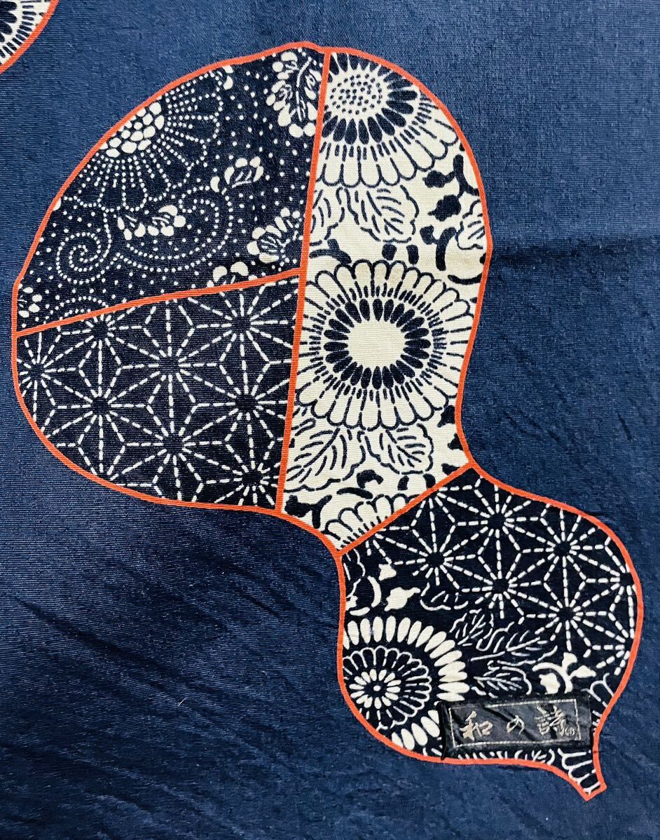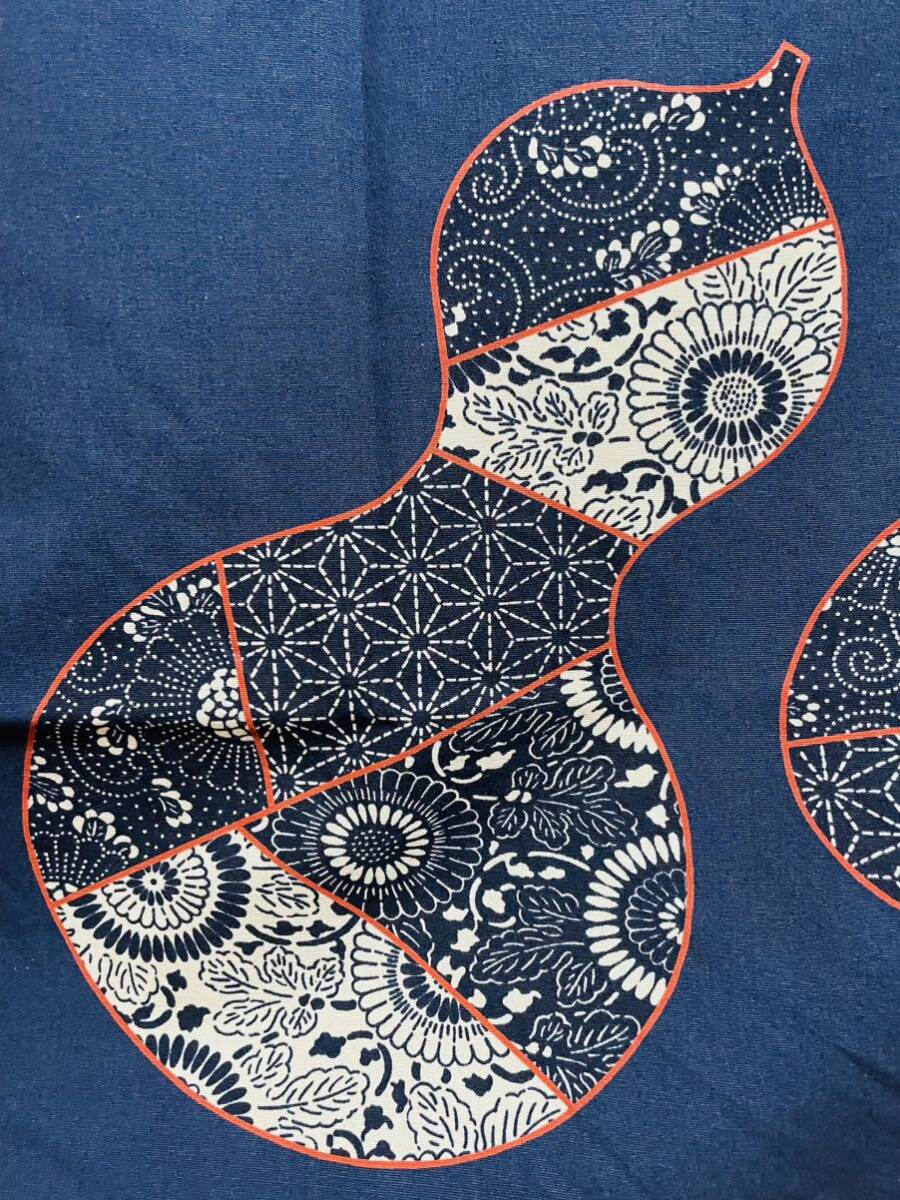 布玄・綿100% 柿、瓢箪、刺子模様風呂敷 122cmx109cmになります。長年自宅保管していたので少し汚れや擦り傷などあります。御理解いただける方よろしくお願いします。