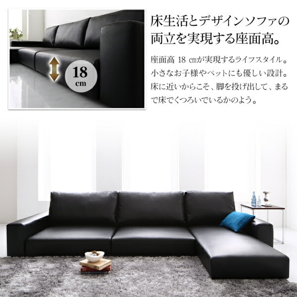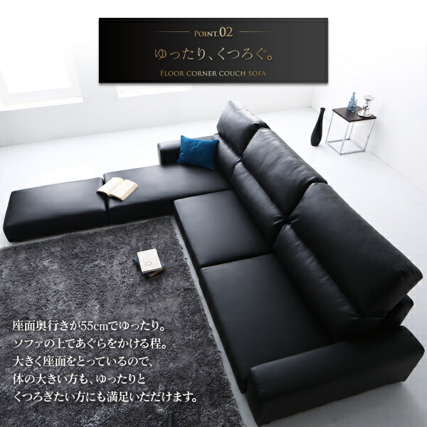 フロアコーナーカウチソファ Levin レヴィン ソファ&オットマンセット ハイタイプ 3.5P【ソファ座面カラー:ブラック】です。