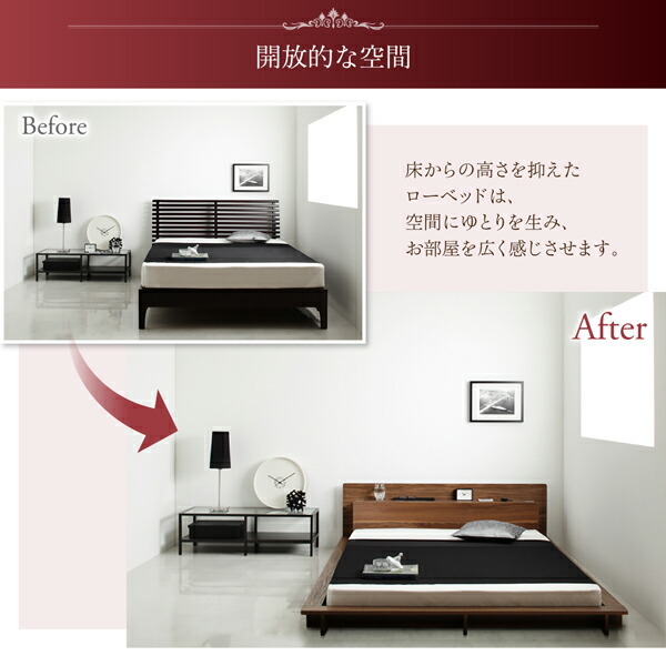 モダンライト・コンセント付き大型ローベッド プレミアムボンネルコイルマットレス付き ダブル【フレームカラー:ウォルナットブラウン】【寝具カラー:ホワイト】です。