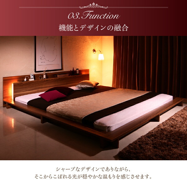 ロングセラー フロアベッド 棚付き 棚 コンセント付き コンセント モダンライト付き 北欧 プレミアムボンネルコイルマットレス付き ダブル