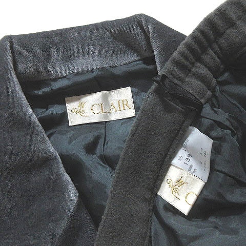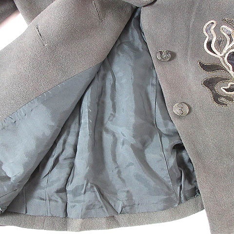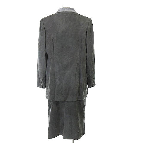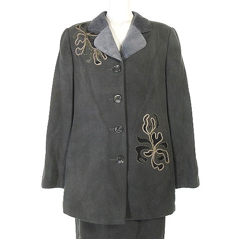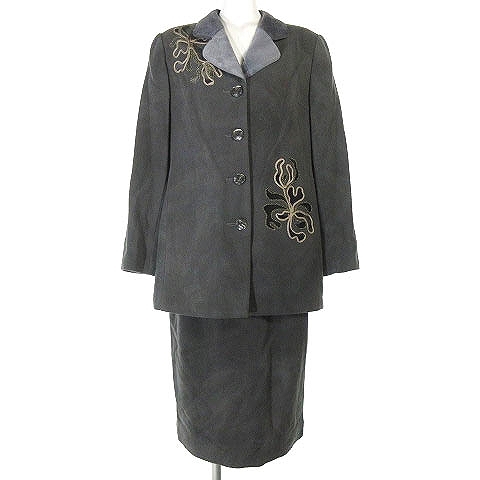 クレル CLAIR スーツ セットアップ ジャケット 刺繍 スカート ひざ丈 イージー ウール 大きいサイズ グレー 13号 レディース