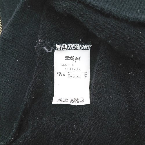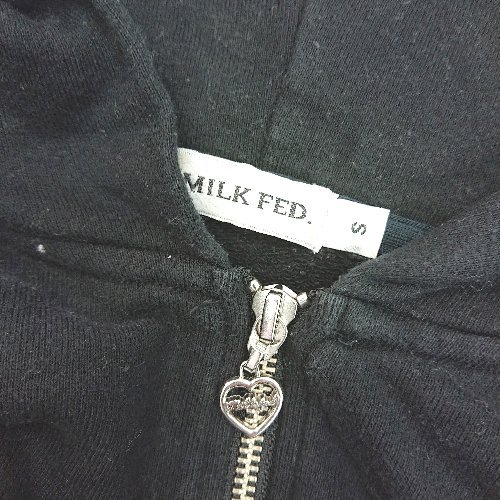 ◇ MILKFED. ミルクフェド ジップアップ カジュアル フード付き 長袖 パーカー サイズS ブラック レディース E