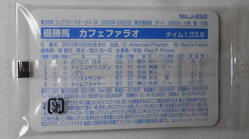 ◎まねき馬カード No.J‐252 カフェファラオ(未開封)
