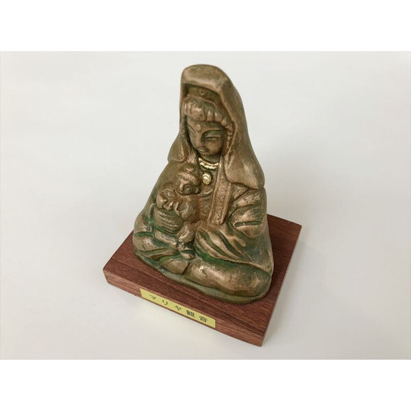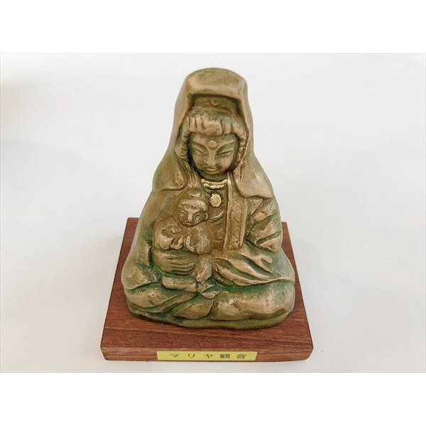 商品は、マリア観音レプリカです。 土台のサイズ 約8.5×7cm土台の下から頭までの高さ 約11cm 材質 陶磁器 マリア観音とは、江戸時代,特に五島列島や平戸諸島で,隠れキリシタンが聖母マリアの化身として,ひそかに崇拝した観音像。表向きは納戸神 (なんどがみ) と呼ばれた仏教的偶像を装った。これはキリスト教信仰の弾圧を避けるための方途として具象化したものであった。
