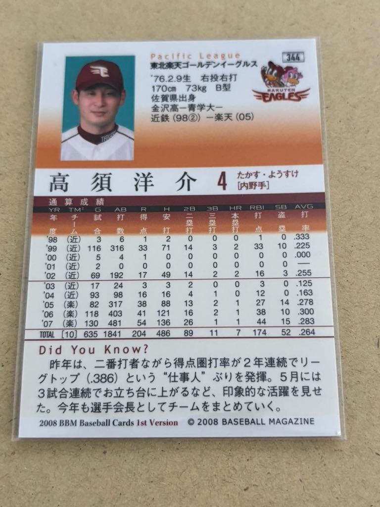 2008BBMベースボールカード1st 344 高須洋介 東北楽天ゴールデンイーグルス レギュラーカード 近鉄