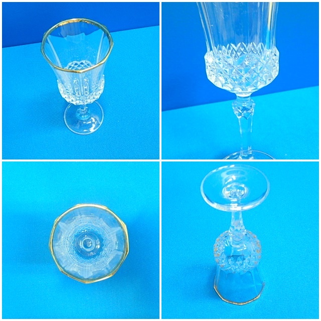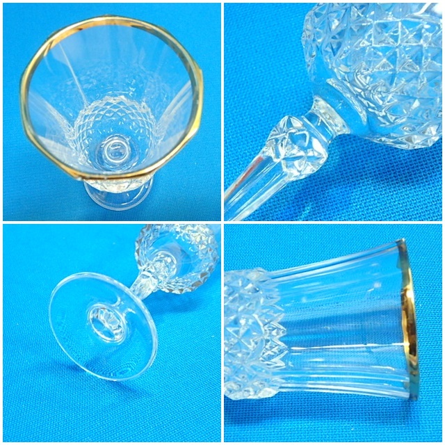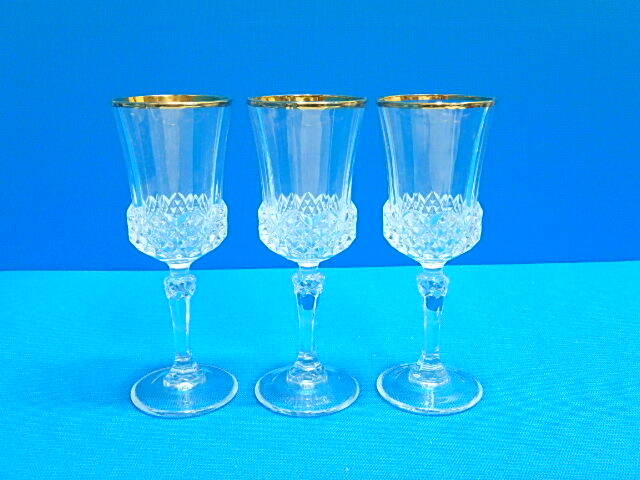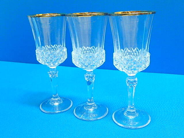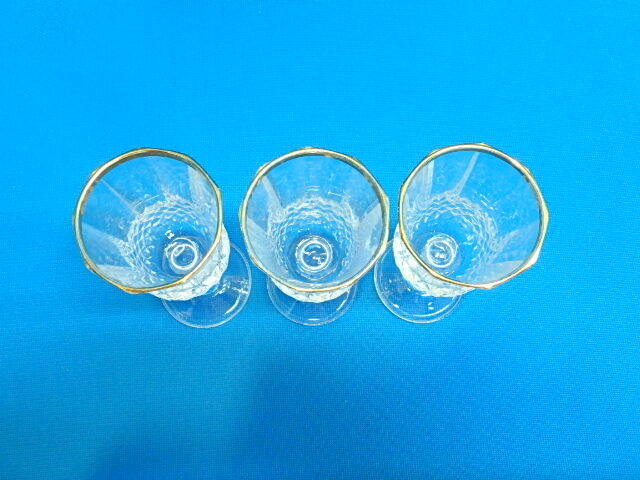 80s406y ワイングラス 3個セット クリスタル 金縁 グラス コップ シャンパングラス 食器 レトロ 中古(北海道・沖縄・離島は発送不可)