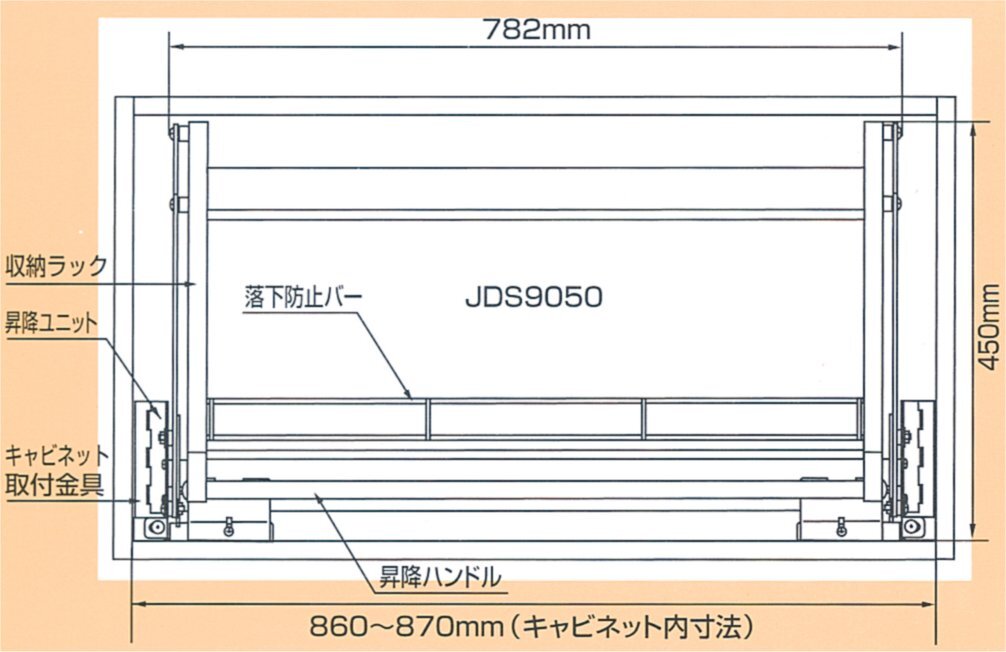 昇降式吊戸棚 スイングダウンウォールJDS90503 吊戸高さ460mm用(幅900mm用)