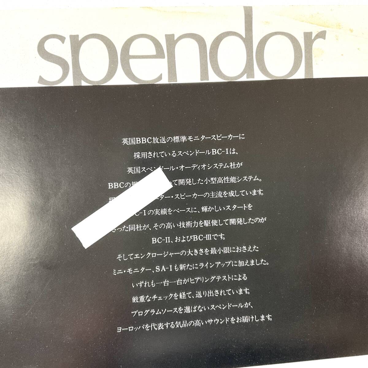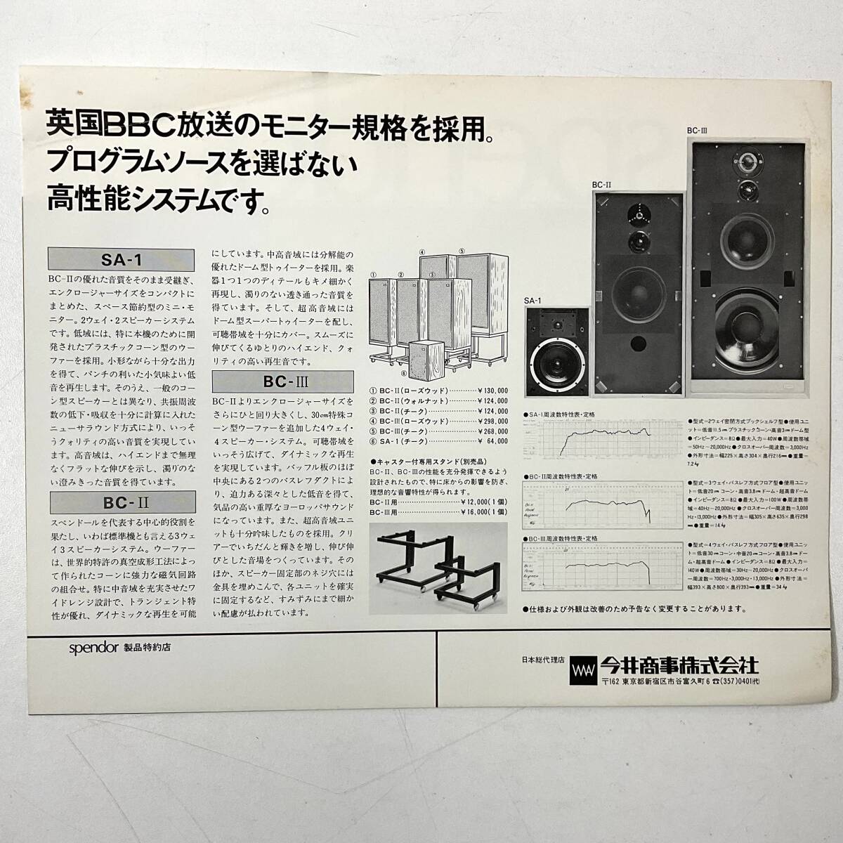入手困難 ヴィンテージ オーディオ パンフレット SPENDOR スペンドール スピーカー 英国BBC 今井商事株式会社 昭和50年代 入手困難