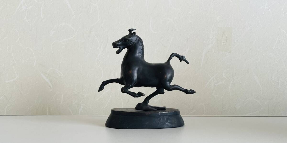 「汗血馬」をモデルにした像と考えられています。汗血馬="”血のような汗を流して走る馬”という事で、古代中国では名馬の中の名馬とされました。