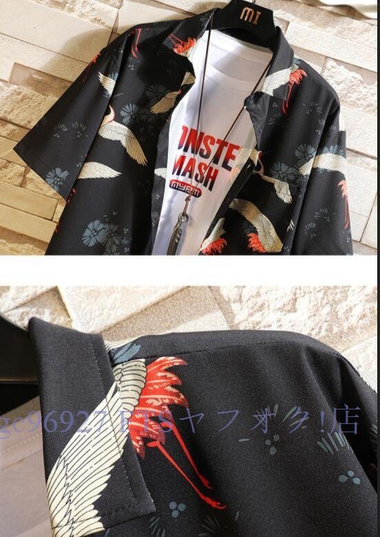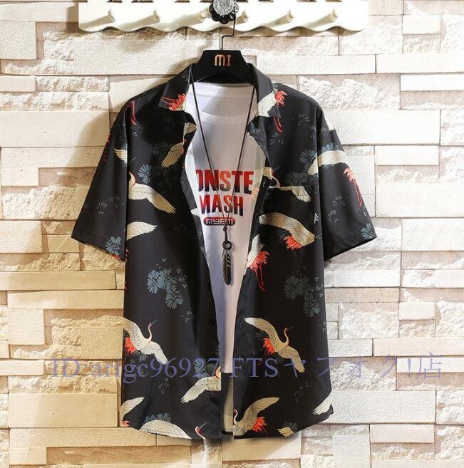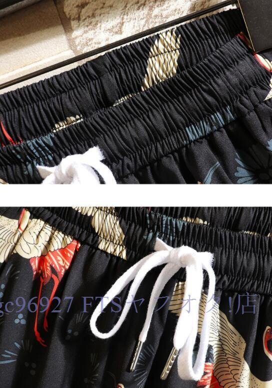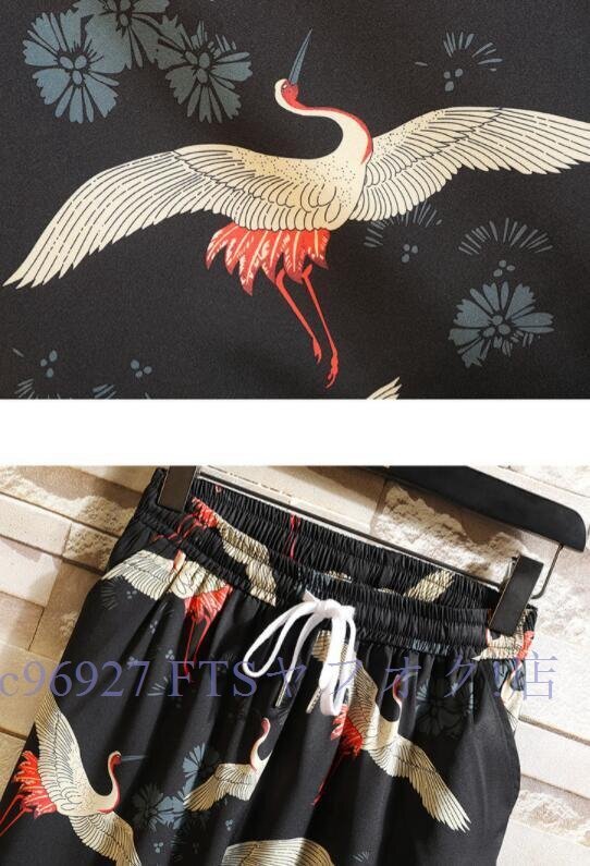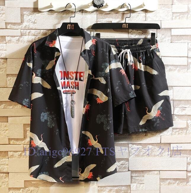 B1571☆夏 セットアップ 花柄 セットアップ 半袖シャツ アロハシャツ 海 リゾート ショーツ 旅行 ハーフパンツ XL~5XL選択/ブラック