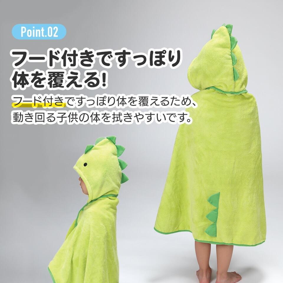 ●フード付きで体をすっぽり覆えるため、動き回るお子様の体も拭きやすい。