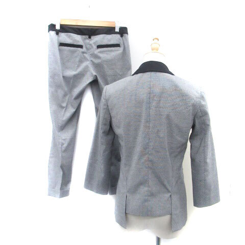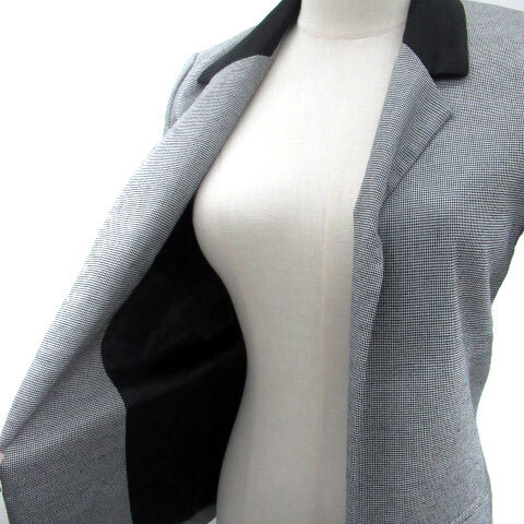 ロイヤルパーティー セットアップ テーラードジャケット 七分袖 前開き テーパードパンツ 千鳥格子柄 36 S オフホワイト 黒 レディース