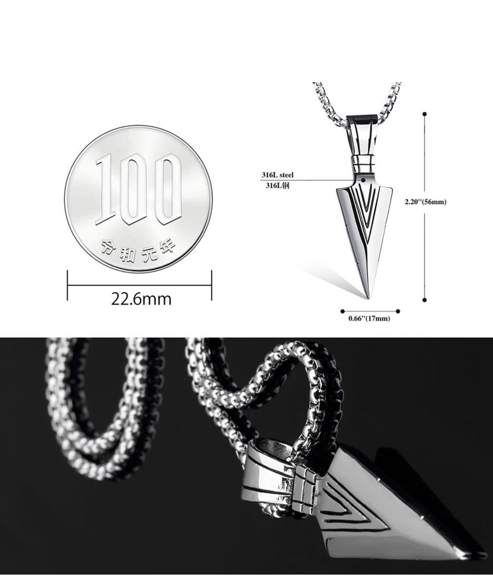 【商品の詳細】 : 三角計 矢印メンズネックレス ステンレスネックレス チェイン長さ:60cm