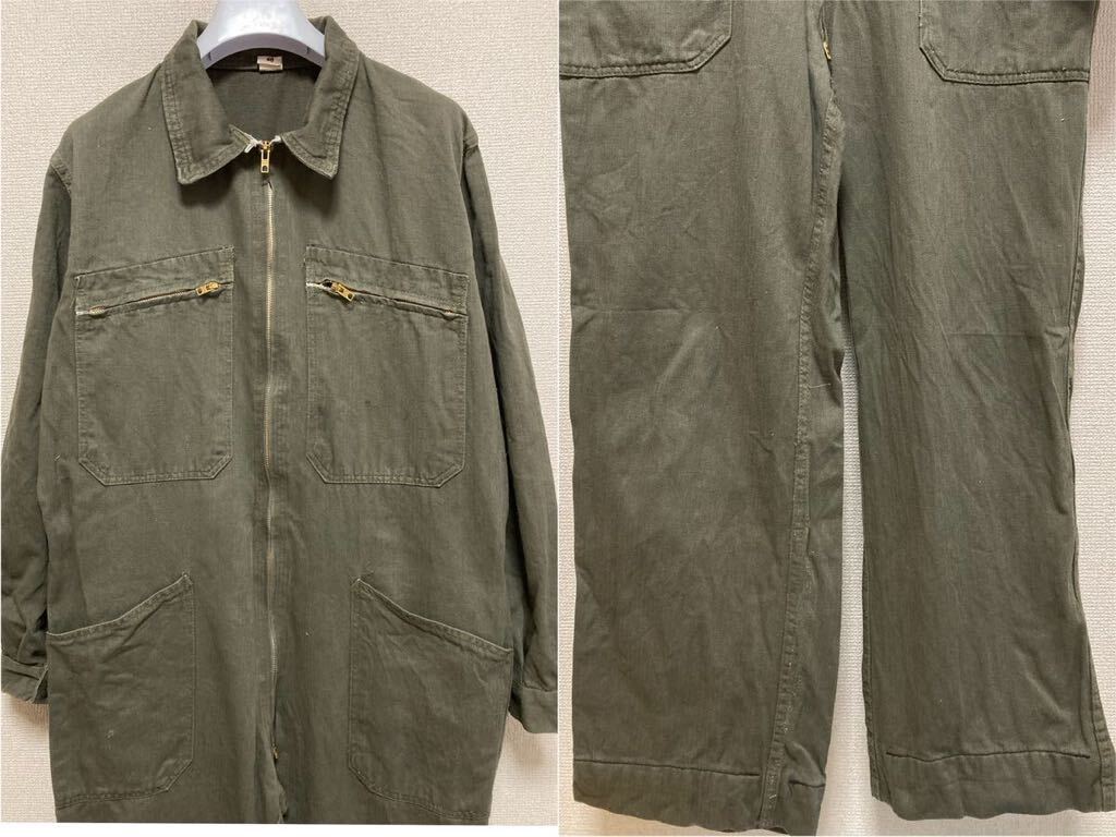 70's ヨーロッパヴィンテージ フレンチヴィンテージ つなぎ オールインワン ヘリンボーン 生地