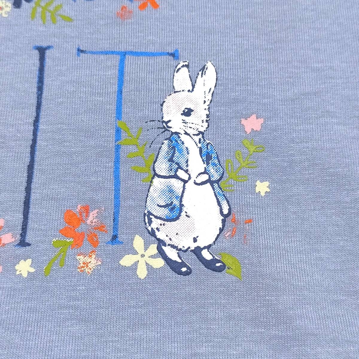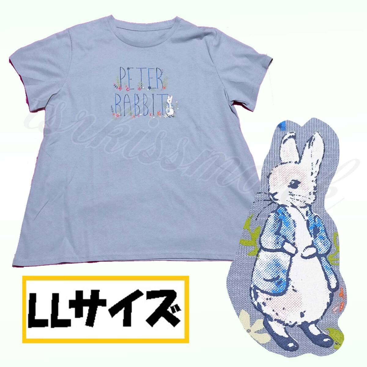 【LLサイズ】ピーターラビット 半袖Tシャツ 丸首 ロゴ 花