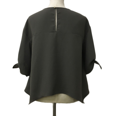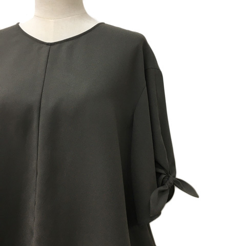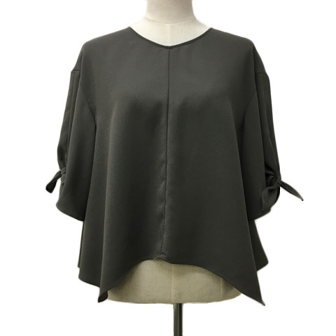 ミミ&ロジャー mimi&roger カットソー ブラウス プルオーバー Vネック 無地 シフォン 五分袖 36 緑 グリーン レディース