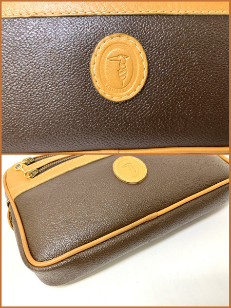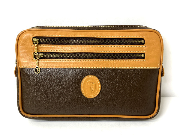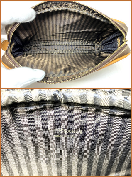 【★即決★】TRUSSARDI トラサルディ セカンドバッグ クラッチバッグ PVC レザー ブラウン キャメル