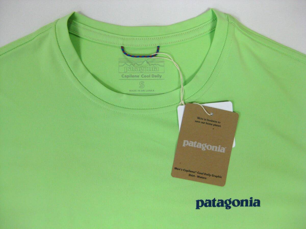 商品説明 | パタゴニア☆メンズ・キャプリーン・クール・デイリー・グラフィック・シャツ☆タグ付き トレイルから水辺までパタゴニア製品の中で最も多用途に使えるテクニカル・トップ。伸縮性と速乾性を備えハイキュ・ミント防臭加工済みで、冷涼から暑熱におよぶ状況で激しく運動しているときも体を快適に保つデザイン。リサイクル成分を50〜100%含むポリエステル素材を使用 カラー「 Boardshort Logo: Salamander Green 」 MADE IN SRI LANKA サイズ US (S) レギュラー・フィット 胸囲89-94cm 首回り38-39 裄丈84 ウエスト74-76cm (patagoniaのサイズ表より、基準とする身体のサイズ) 平置きで、着丈約67cm、身幅約50cm 裄丈約46cm 動きやすさとフィット感を向上するセットイン型の袖 水の中でも外でも活動中の快適さを高める、速乾性と吸湿発散性を備えた伸縮性素材 吸湿発散性加工を施し、さわやかな着心地を長く保つハイキュ・ミント防臭加工済み 吊り下げて乾かすのに便利なループ付き 左裾に織りのP-6ラベル付き |