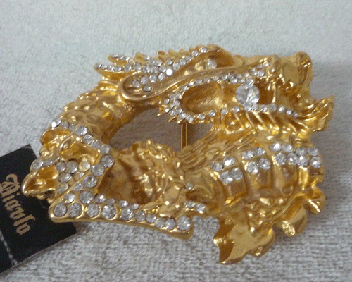 ☆美品☆ ディアブロ Diavlo 金属素材 ラインストーン ゴールド 金色 龍モチーフ バックル | ||