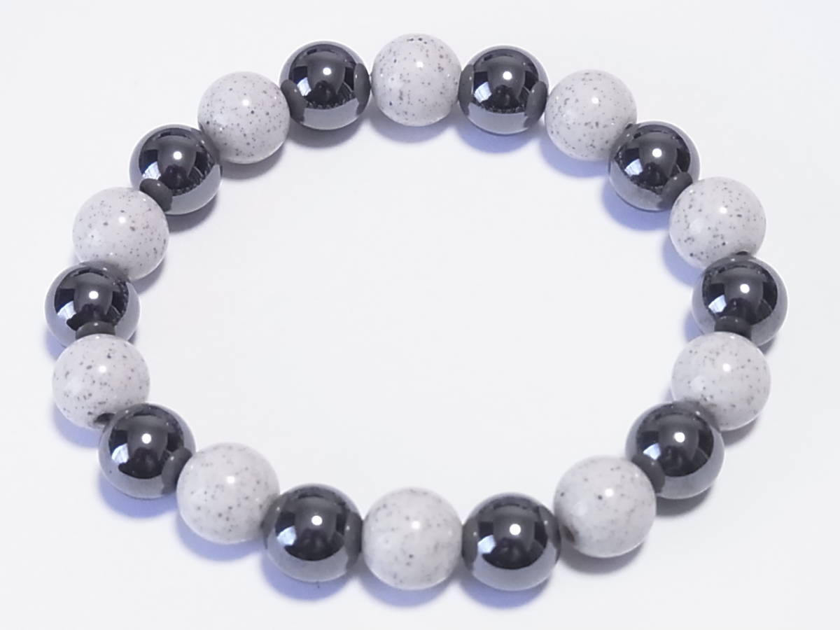 北投石と磁気ヘマタイトを使ったブレスレットです | |||