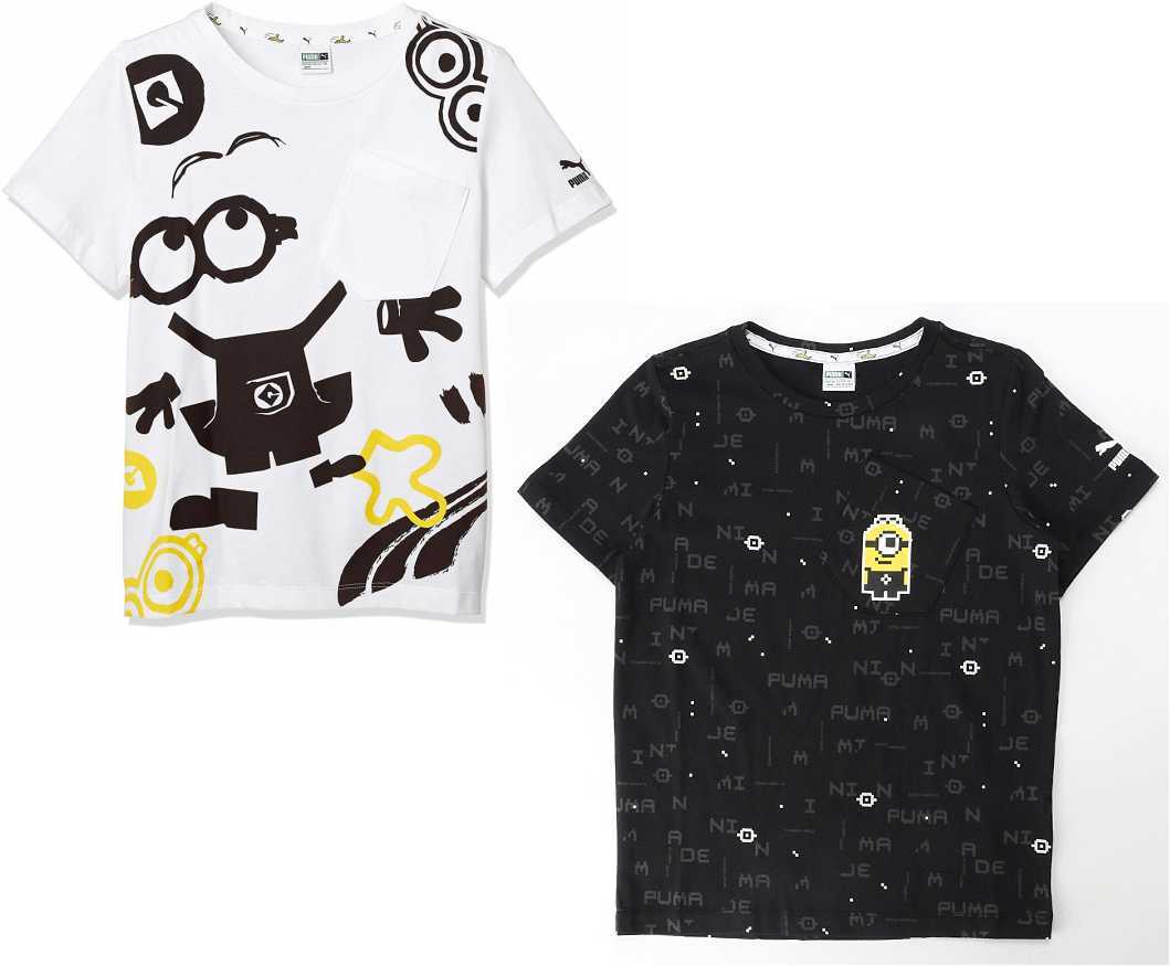 プーマ ミニオンズ コラボ キッズ 半袖Tシャツ 2枚セット 116 ホワイト ブラック 白 黒 Minions 子供用 男女兼用 ジュニア