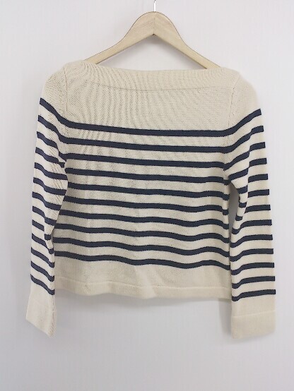 ◇ NATURAL BEAUTY BASIC ボーダー ボートネック 長袖 ニット セーター サイズM アイボリー ネイビー レディース P