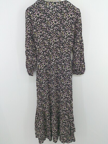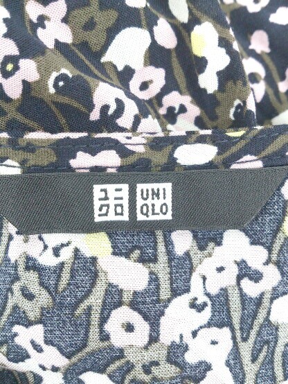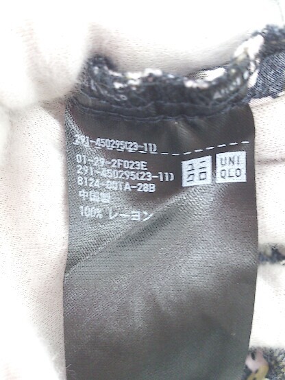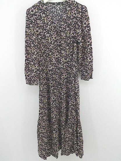 ◇ UNIQLO ユニクロ 総柄 長袖 ロング ワンピース サイズS ブラック マルチ レディース P