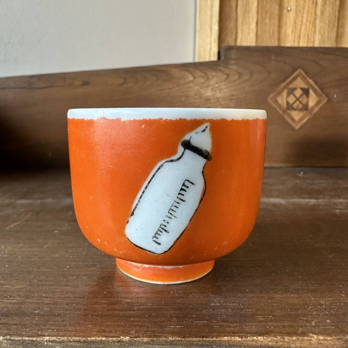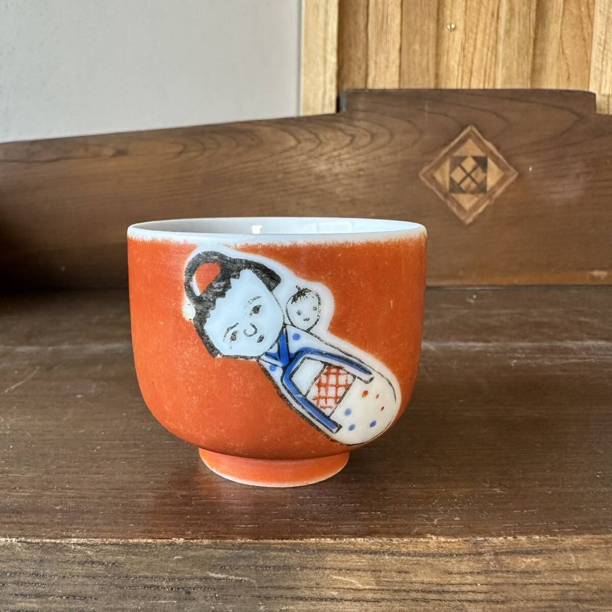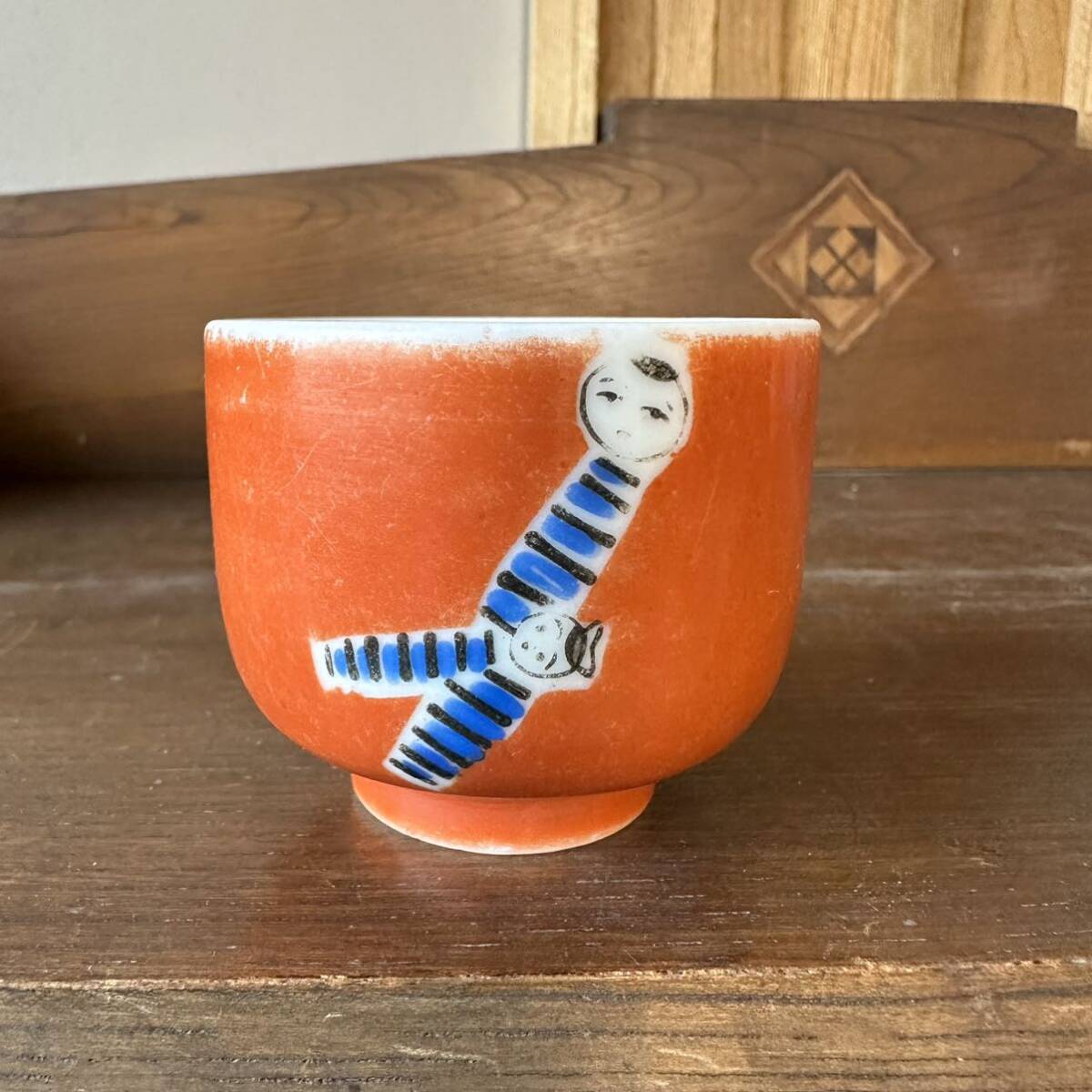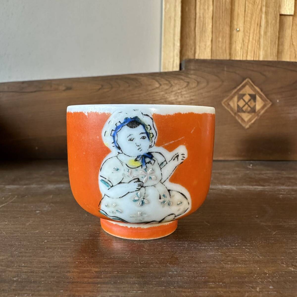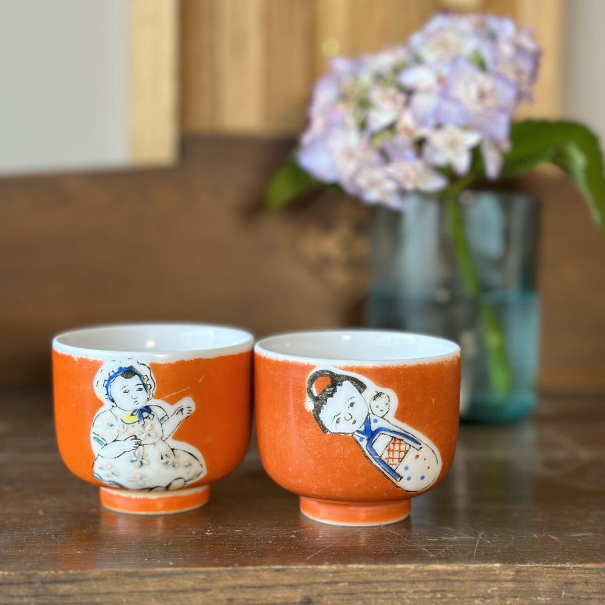 こけしとお人形が描かれた珍しい柄の湯呑です