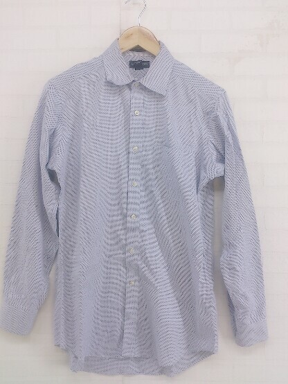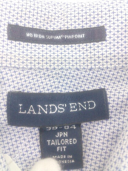◇ ◎ LANDS' END ランズエンド 総柄 長袖 シャツ サイズ39-84 ホワイト系 ネイビー メンズ E