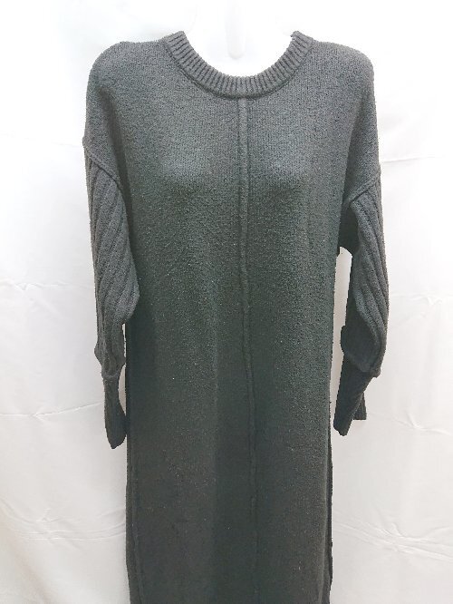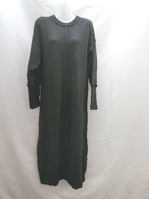◇ select MOCA セレクト モカ ニット クルーネック シンプル 長袖 ロング ワンピース サイズF ブラック レディース E