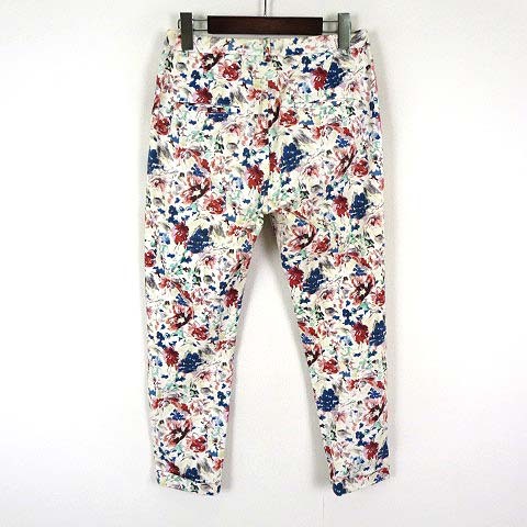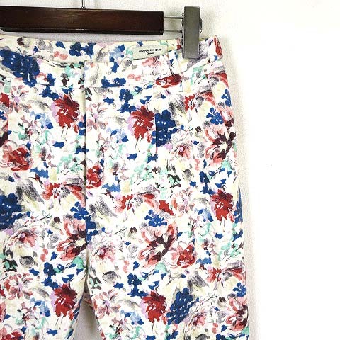ジャーナルスタンダードレサージュ journal standard L'essage パンツ クロップドパンツ テーパード 花柄 総柄 タック M 36 オフ白 赤 青