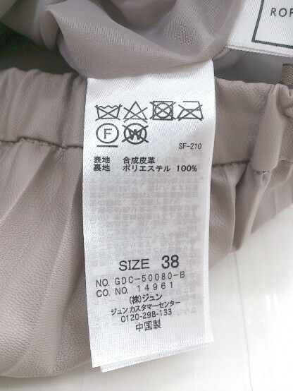◇ ROPE PICNIC フェイクレザー バックゴム ロング プリーツ スカート サイズ38 ピンクベージュ系 レディース E