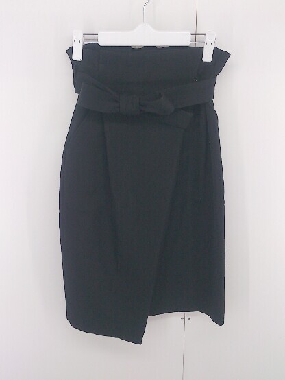 ◇ ◎ ADAM ET ROPE ウエストベルト付き 膝下丈 ラップ スカート サイズ36 ブラック レディース E