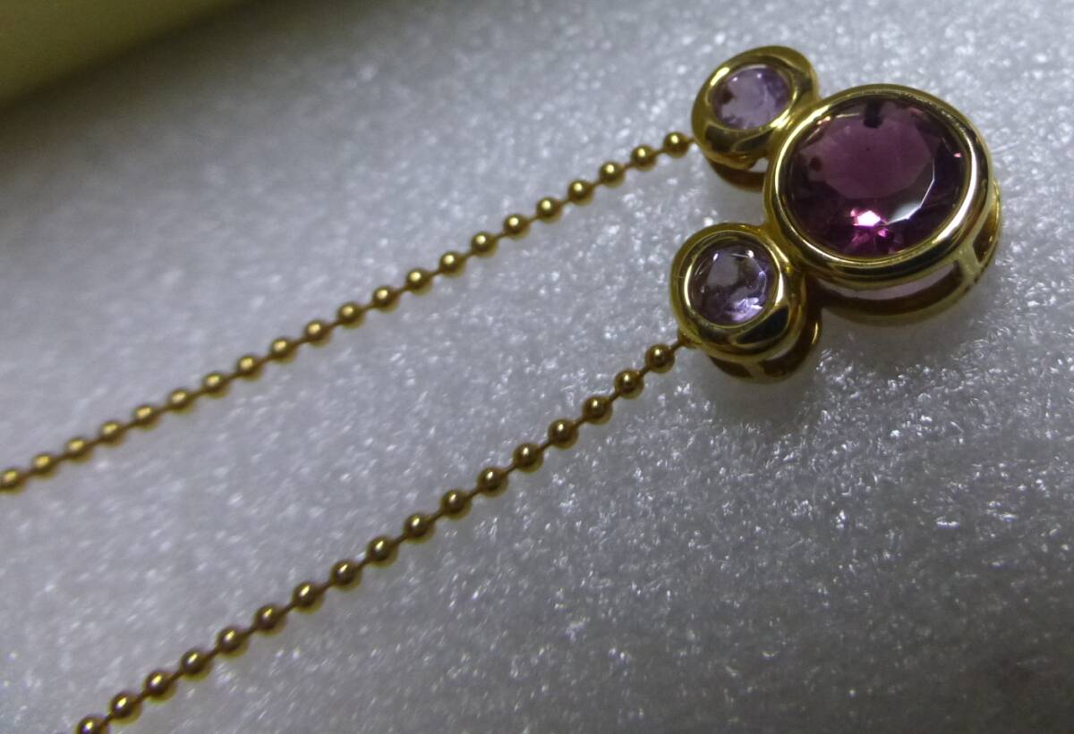ディズニー ネックレス K18 ミッキマウス 色石 Disney