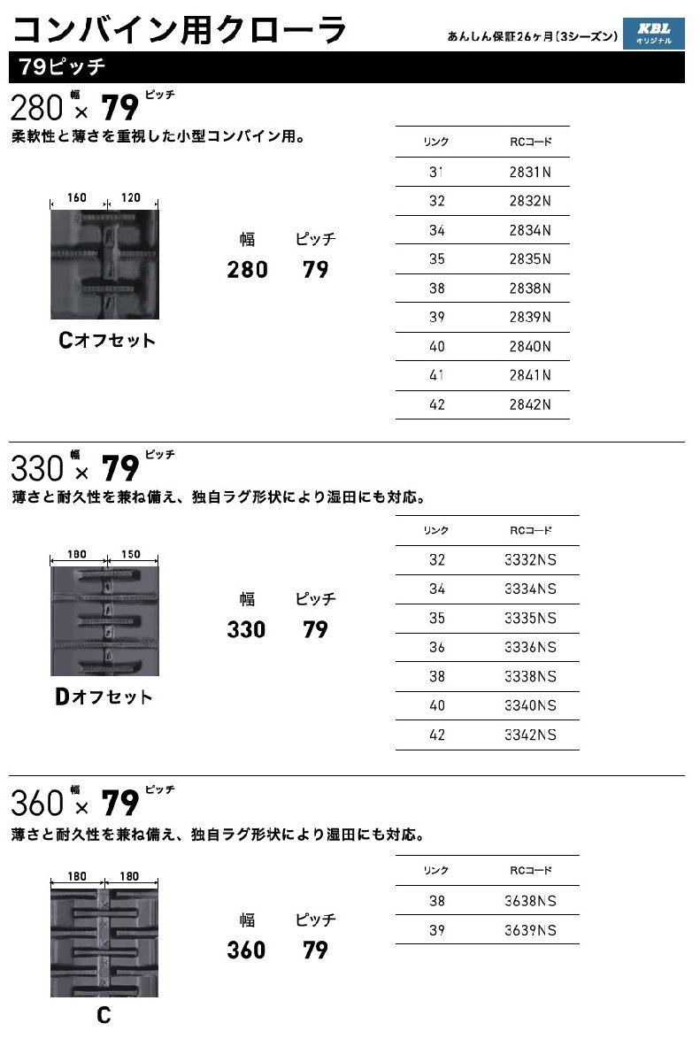 KBL コンバイン用ゴムクローラ 3338NS:幅 330xピッチ 79xリンク数 38 ※1本価格