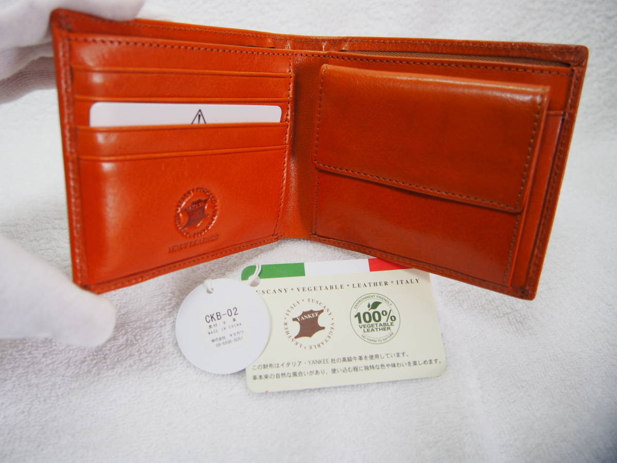 送料無料 新品 未使用 オレンジ 二つ折り財布 札 コイン プレゼント 贈り物 最高級 牛革 ORANGE 小銭入 YANKEE社製 CKB-02