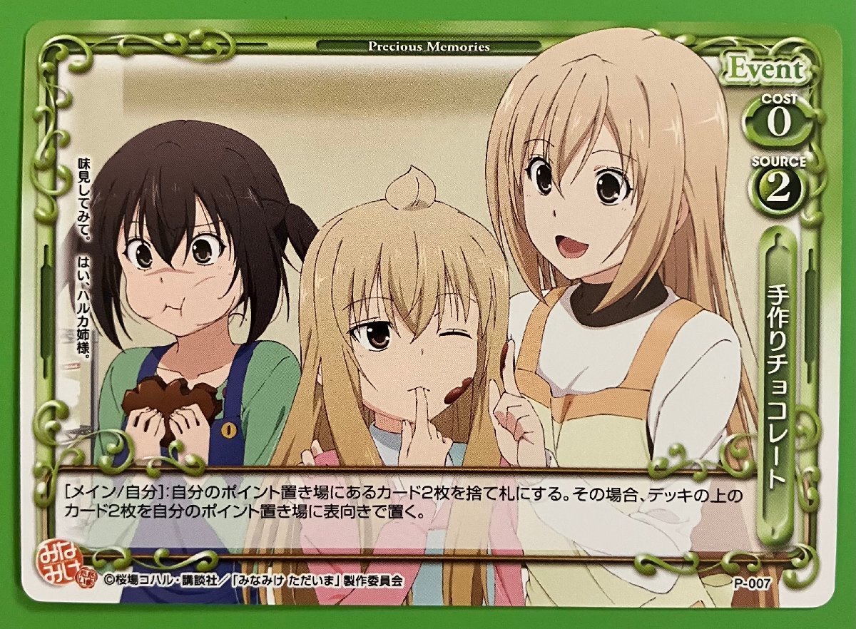 ☆プレシャスメモリーズ P-007 みなみけ ただいま 手作りチョコレート PRプロモトレカ 緑 4枚
