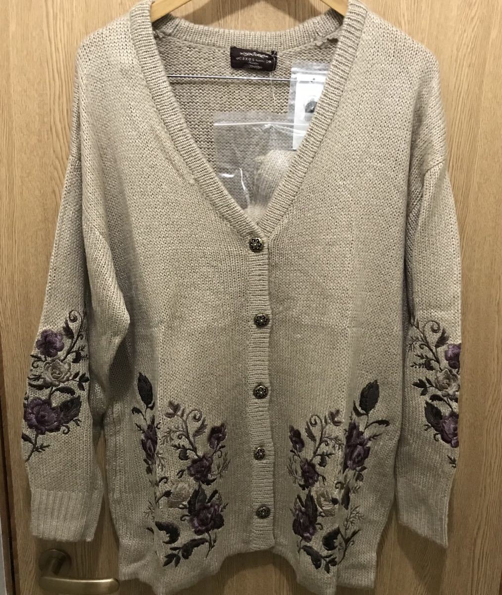 セール 新品 タグ付き アクシーズファム バラ刺繍 ロングカーデ Mサイズ 生成り 薔薇 刺繍 カーディガン アクリル100%