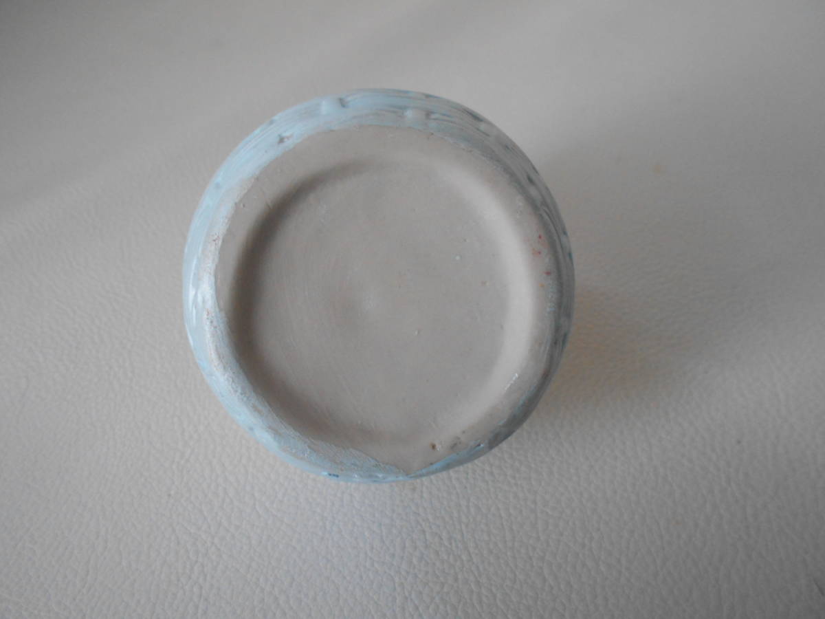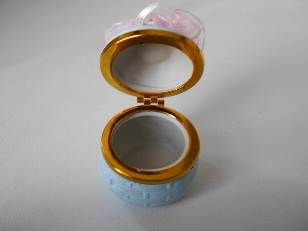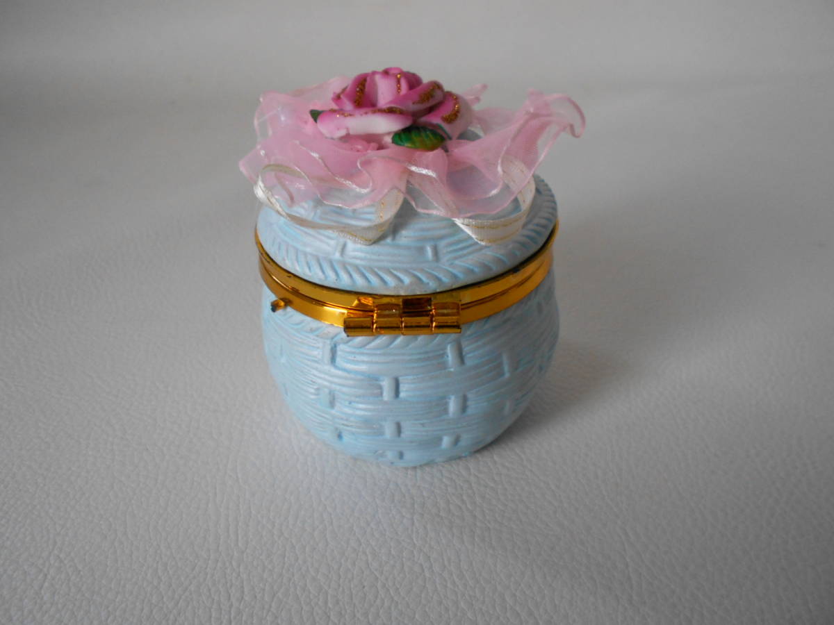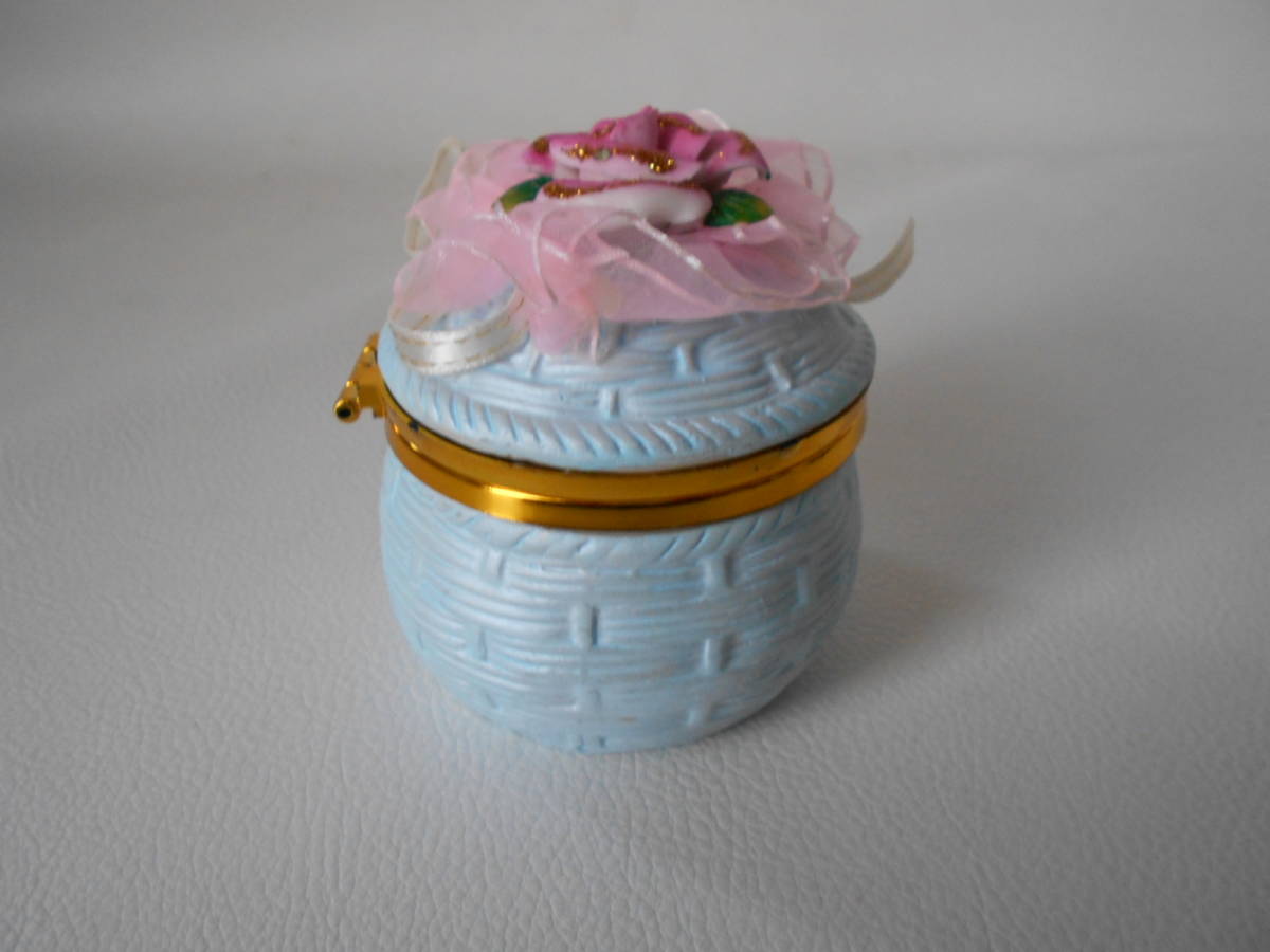 昭和レトロポップ 陶器製 小物入れ キャンディーポット 水色 バラとリボンの飾り付き 未使用自宅保管品
