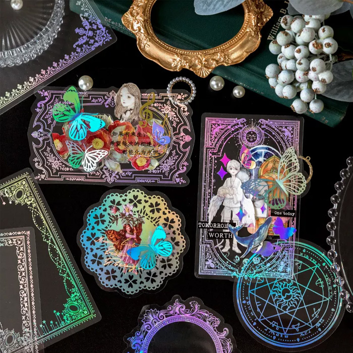 10枚 シール 透明 額縁 フレーム おしゃれ アンティーク ビンテージ デコステッカー コラージュ レトロ 1027-1