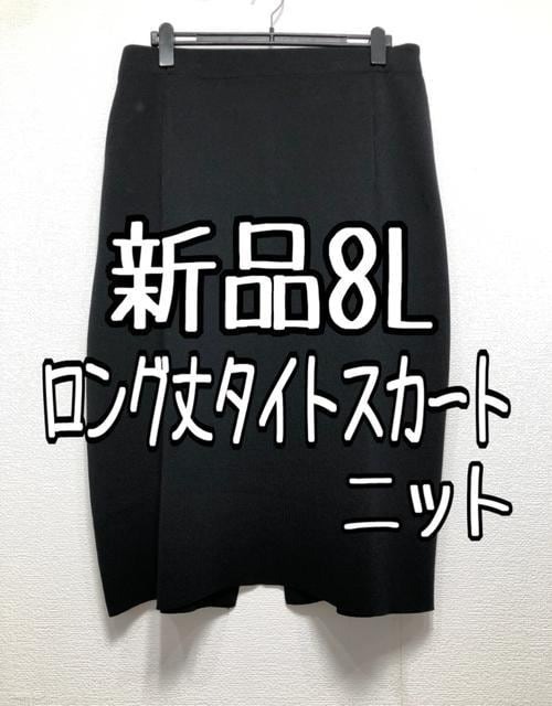 新品☆8L♪黒系♪ニットのロングタイトスカートきれいめ☆w332