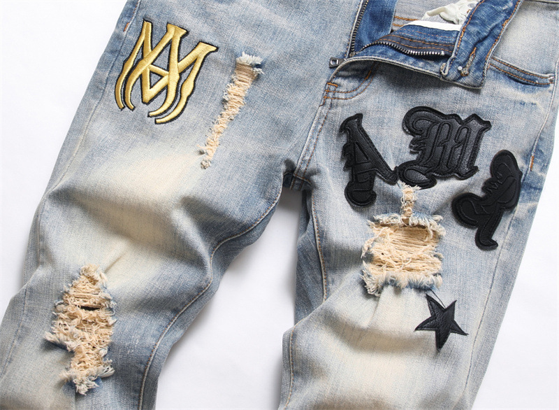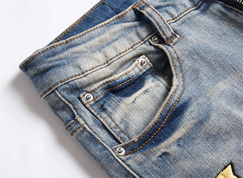 メンズ デニムパンツ 個性ジーンズ ジーパン スキニー 星柄 刺繍 ダメージ加工 ストレッチ 個性 大きいサイズあり w29~w38