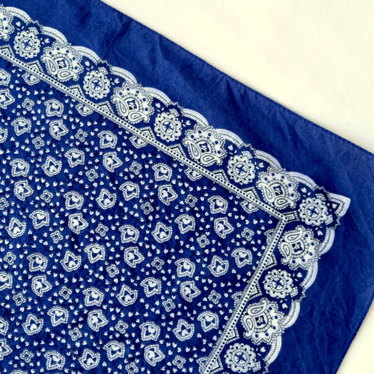 デッドストック【 ヨーロッパ ビンテージ 】コットン 植物柄 バンダナ / ブルー ホワイト 青白黒系 / フランス ワーク