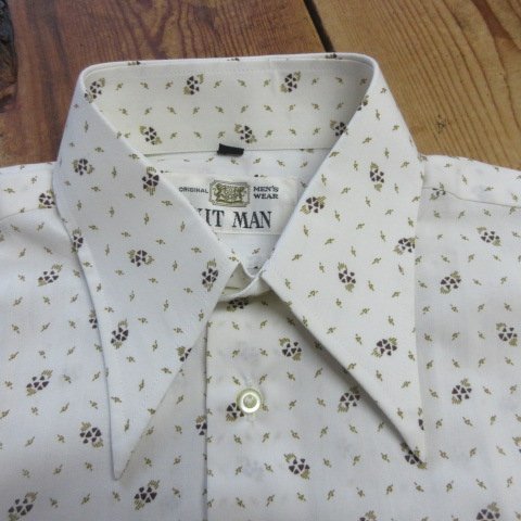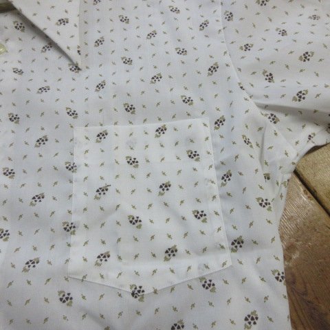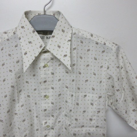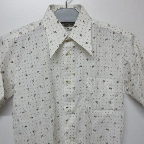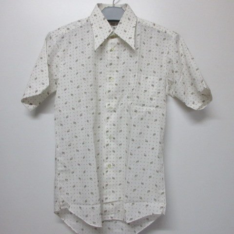 KIT MAN 昭和レトロ 半袖 柄シャツ S 白 未使用 オールド JAPAN古着 aa409