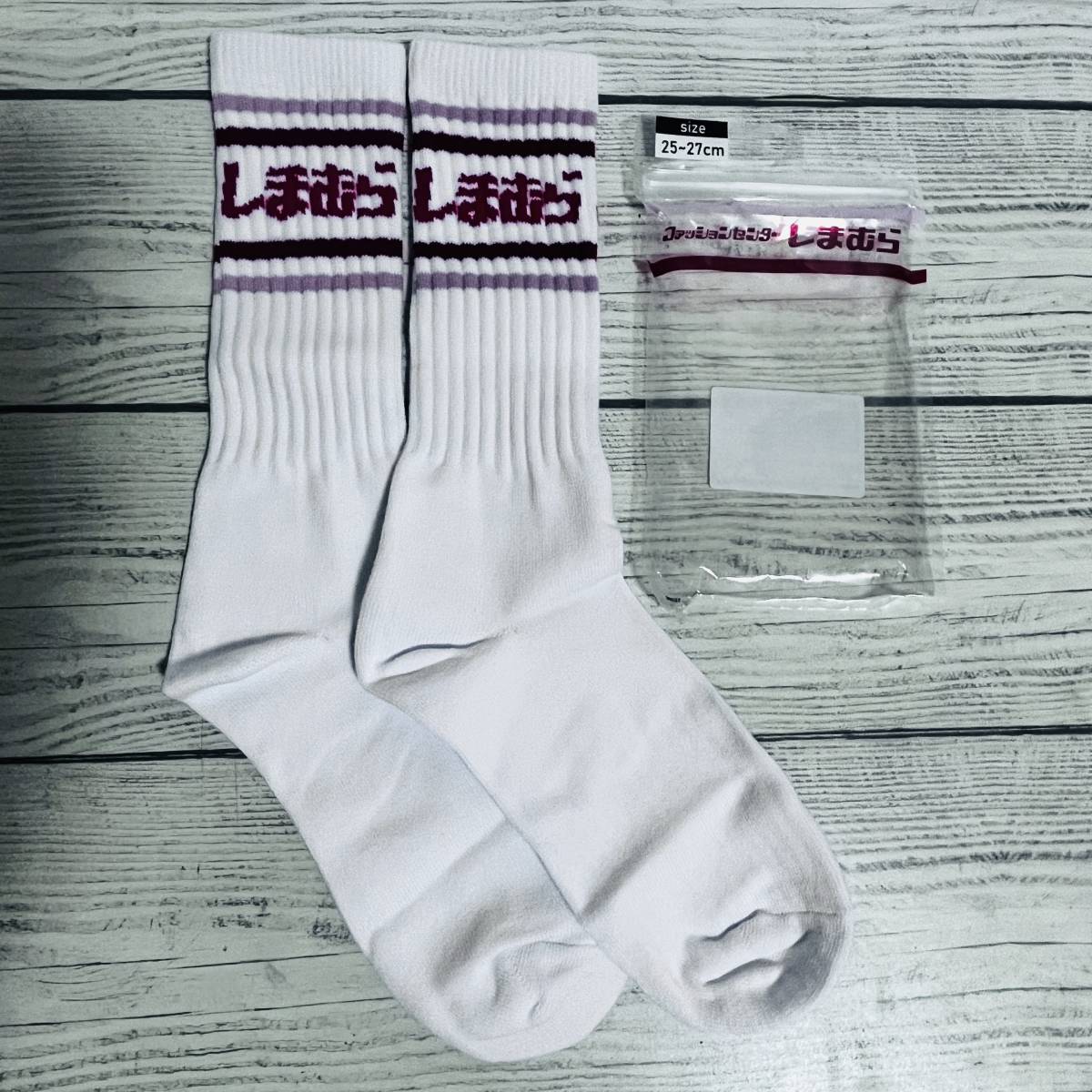 2足 しまむら ひらがな ロゴ 靴下 ソックス 25cm~27cm 男女兼用 柄違い ラインソックス ( 新品 未使用品 人気完売品 )