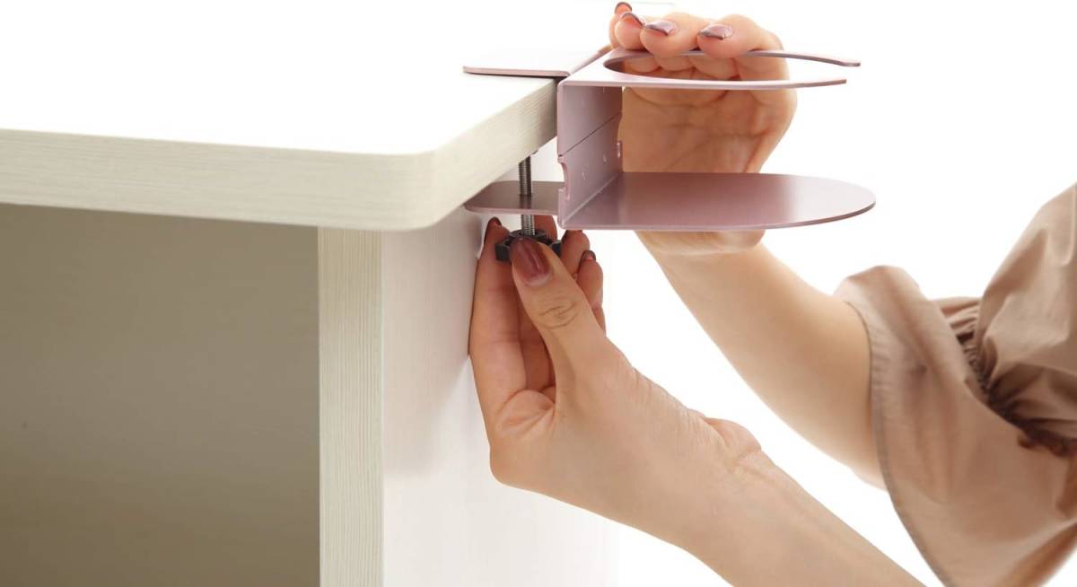 机や椅子、棚などに装着することで、ドリンクや観葉植物を置くスペースを作ることができます。