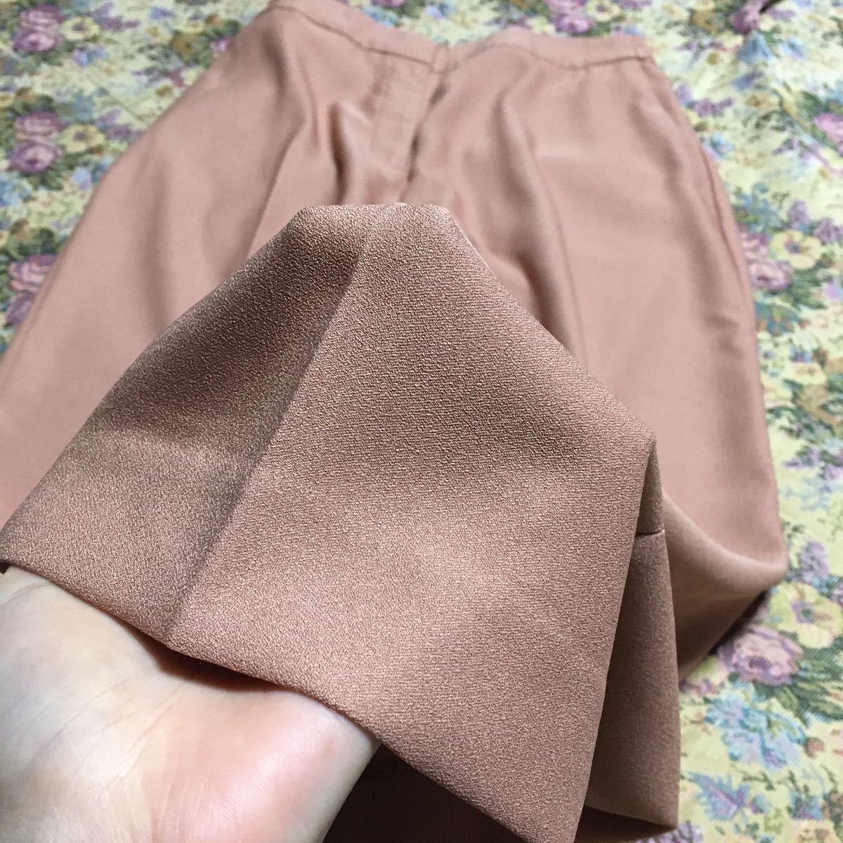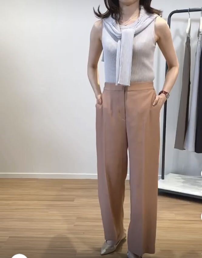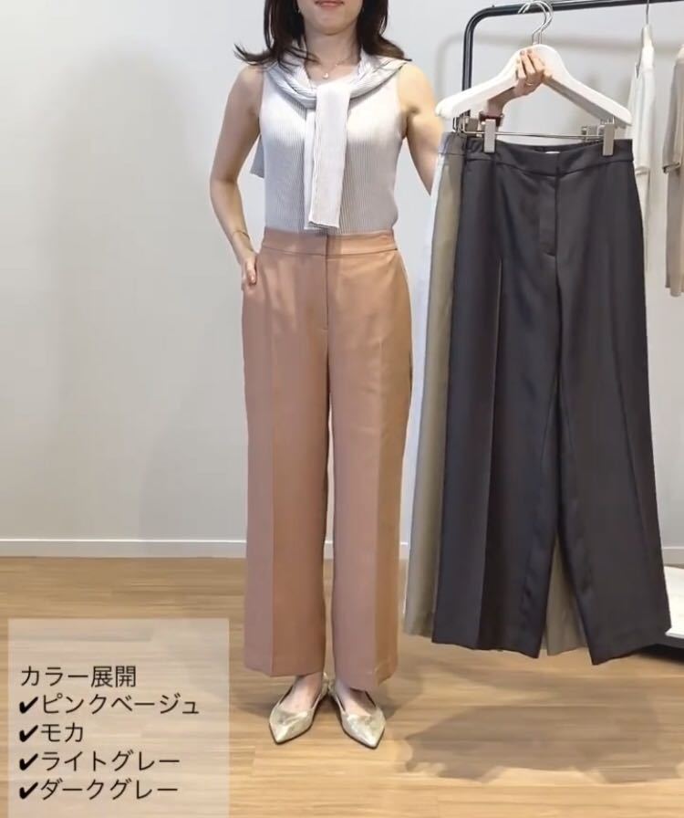 ストンと落ちる綺麗なストレートシルエットです。大人っぽいくすみピンクは、綺麗めアイテムはもちろん、シンプルに白T+スニーカーでもサマになります◎