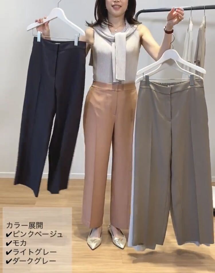 脚のラインをカバーしながら、すっきりおしゃれに見えるパンツです。